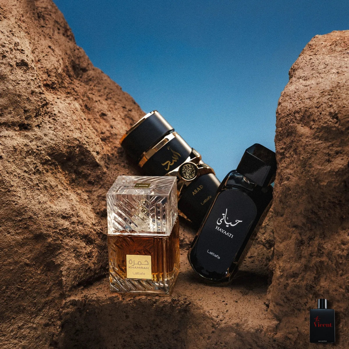 Hayaati de Lattafa: frescura moderna con carácter. Manzana y bergamota se fusionan con especias suaves y un fondo cálido de vainilla y almizcle. Unisex, duradero y perfecto para todos los días.